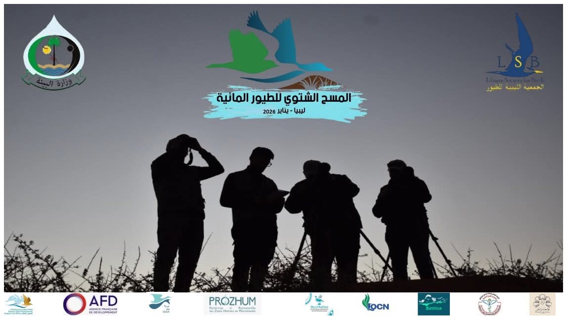 انطلق اليوم الخميس الموافق 15 يناير 2026 التعداد الشتوي للطيور المهاجرة في ليبيا، ضمن البرنامج الدولي المعتمد لرصد الطيور المائية والمهاجرة في الأراضي الرطبة، وباستخدام منهجيات علمية موحّدة تُطبَّق على المستوى الدولي.