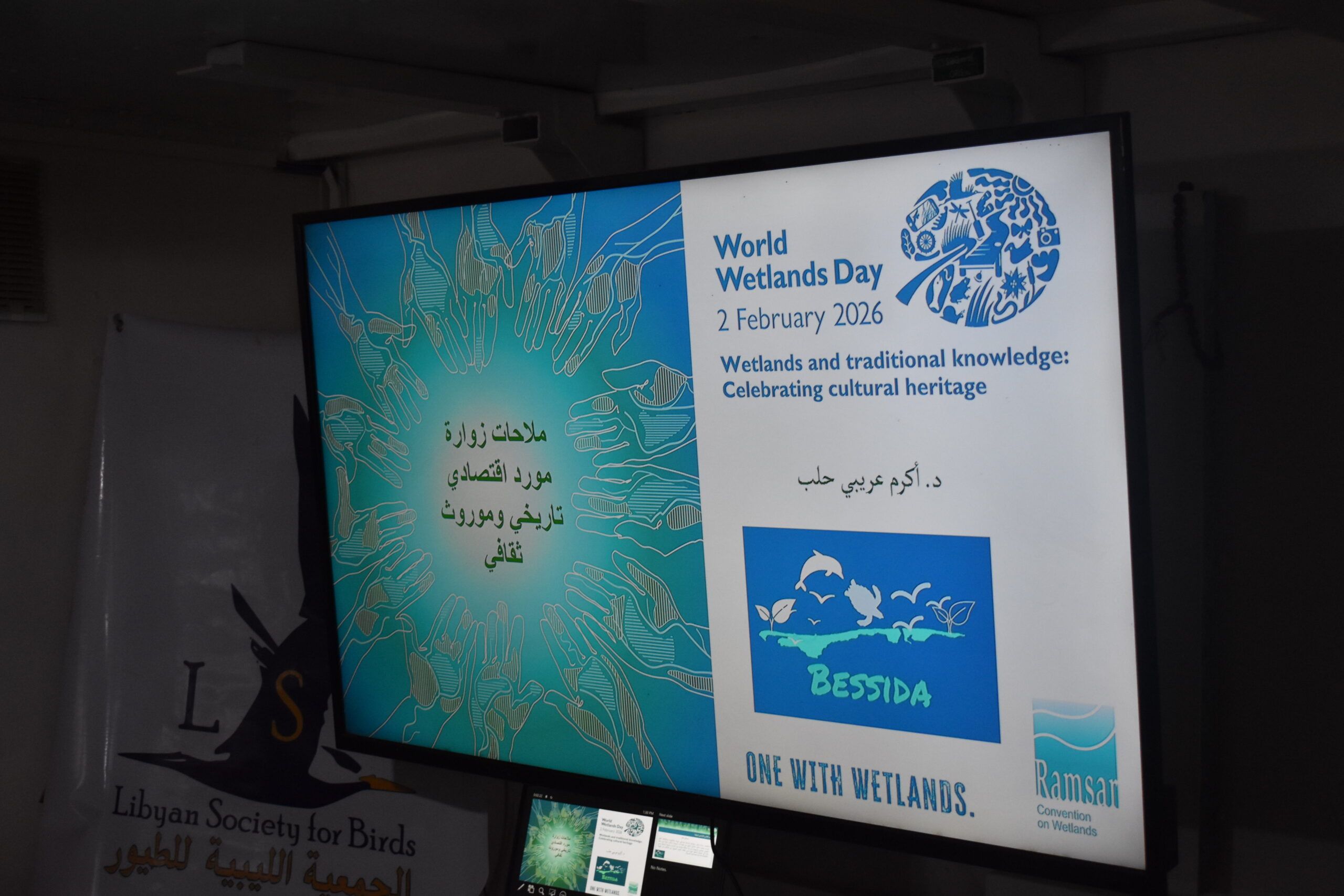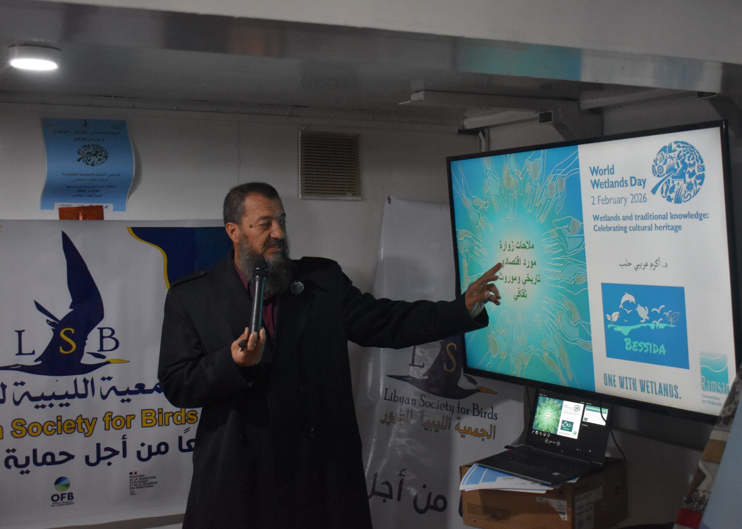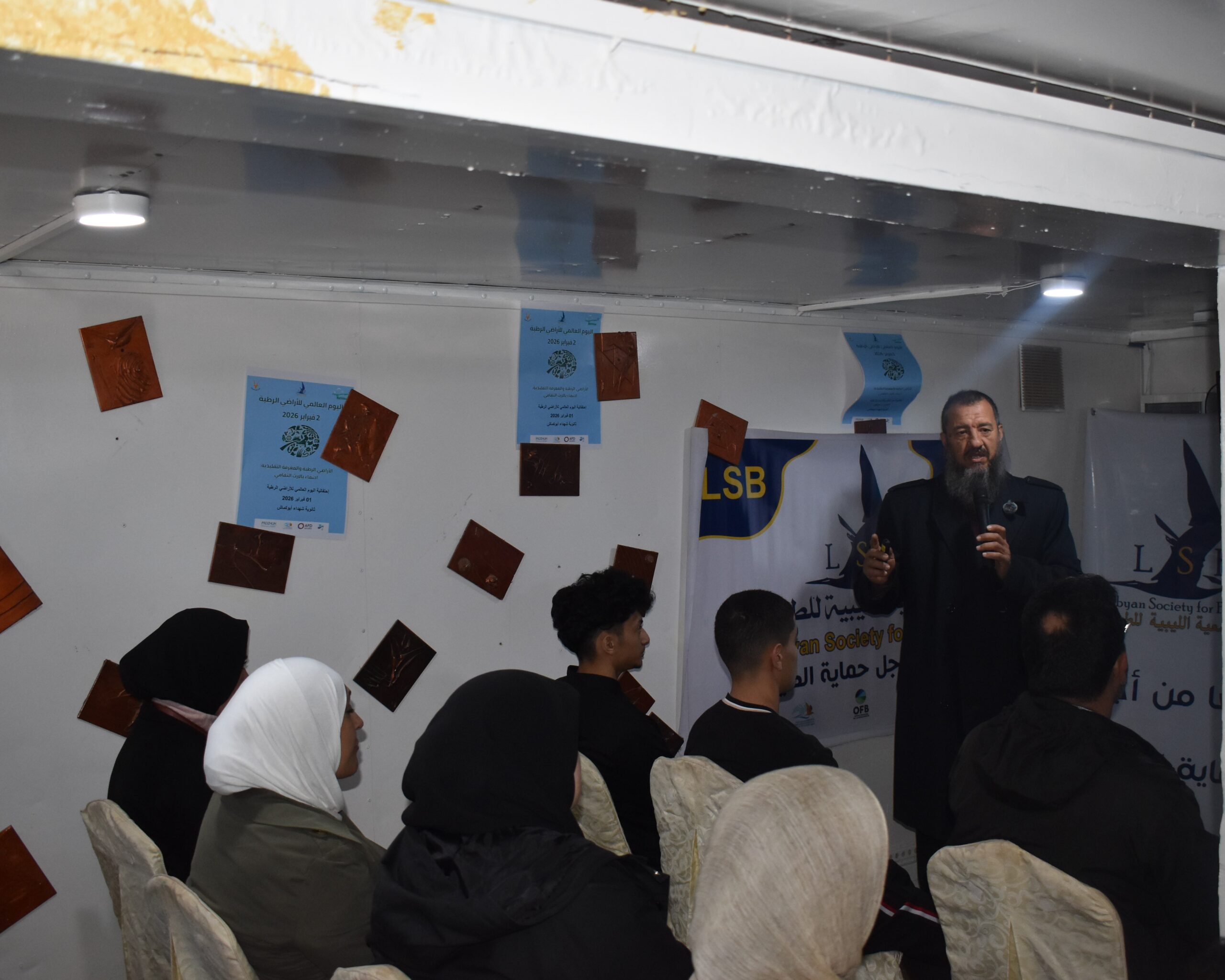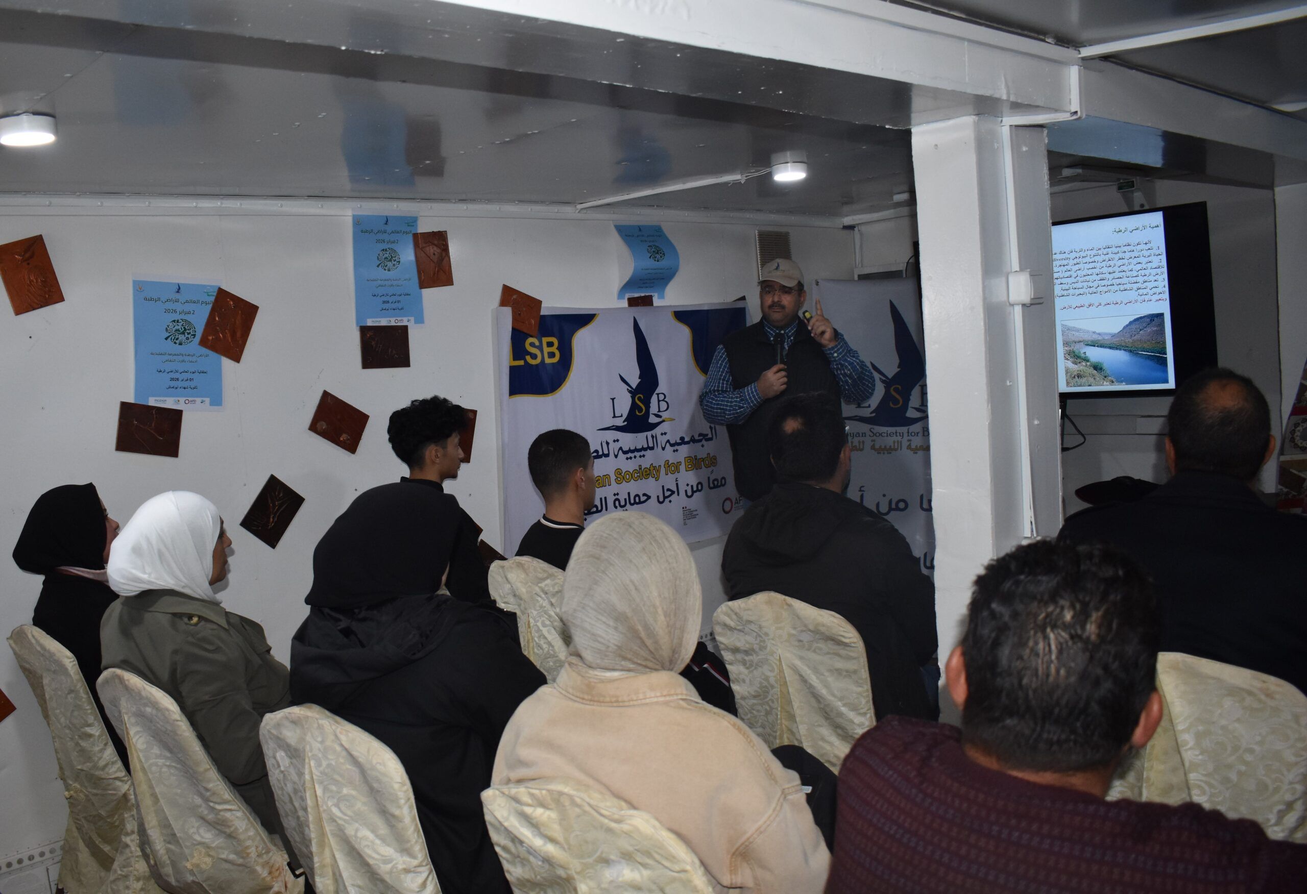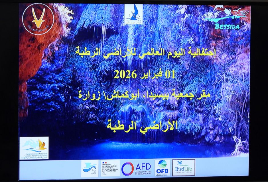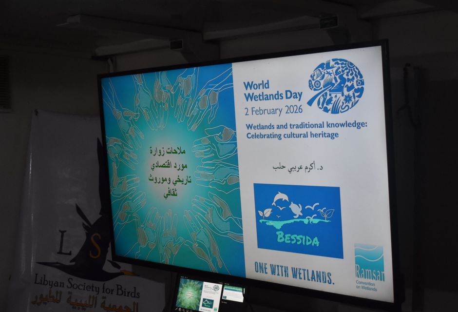 Despite challenging weather conditions, the Libyan Society for Birds, in partnership with the Bessida Society for the Protection of Farwa Island and Lagoon and the University of Tripoli’s Department of Zoology (Ecology and Marine Divisions), celebrated World Wetlands Day at the Bessida Society headquarters in Abu Kammash.